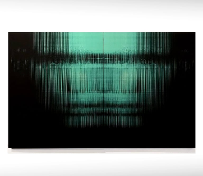 The use of found images carries within it the dissonance of digital detritus, mirroring the constant flux of visual culture. In this context, the viewer is both witness and participant in an interpretive dance between what is seen and what is sensed. The holographic treatment of perception does not resolve the tension, but rather accentuates the instability of meaning, asking us to reconsider how images function in the space between memory and projection. As the works unfold, they speak to a world saturated with fleeting signals and unresolved stories, where each image is a portal — not to certainty, but to multiplicity. Through its ephemeral visual language and dislocated sources, the series confronts the paradox of seeing: how the act of looking can simultaneously reveal and obscure. In doing so, HOLOGRAPHIC VISION becomes not only a meditation on image and perception, but a contemporary ritual of decoding reality in a digital age — an exploration of our yearning to grasp the intangible.