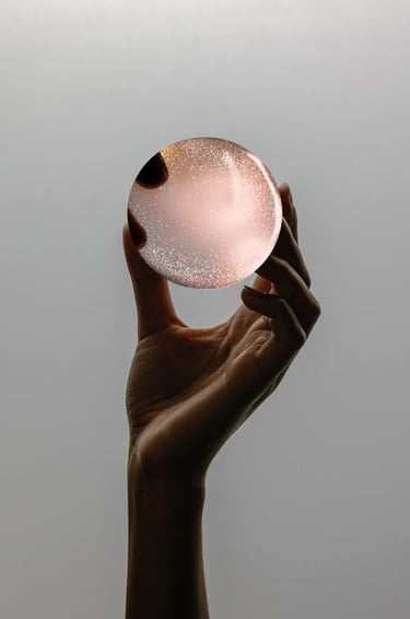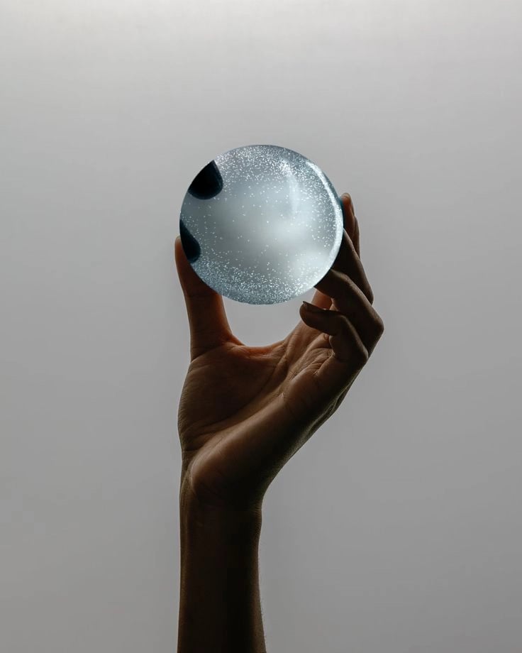 This project imagines a future in which communication transcends language, emerging through perceptual resonance and ambient exchange. The hand and the sphere form a symbolic due, a gesture of contact with the unknown, a tactile interface with invisible data. Meaning is no longer spoken but felt, absorbed, and modulated through presence. Rooted in phenomenology, the project treats perception as a co-creative act. The object is not a passive tool but a participant in experience. It responds to proximity, emotion, and environmental shifts, translating them into gradients of light, temperature, vibration, or electromagnetic murmurs. These are not messages in the traditional sense but affective signals that shape shared atmospheres. Inspired by Philip K Dick’s speculative paranoia and ontological instability, the project questions the reliability of perception and the boundaries of reality. What if objects could sense our inner states, if environments could whisper back, if communication became a form of mutual hallucination shaped by ambient data and emotional residue? The designed artefacts are speculative prosthetics, translucent, minimal, and alive. They do not transmit words but modulate presence. They allow for silent transmission, a form of communication that bypasses language and enters the realm of embodied intuition. These objects are not explanatory; they are experiential. They provoke, distort, and reveal. In this speculative ecology, communication becomes a choreography of signals, a dance of invisible forces. The sphere is not a crystal ball; it is a sensorium. It holds the possibility of shared perception, of attuned coexistence, of meaning without speech.