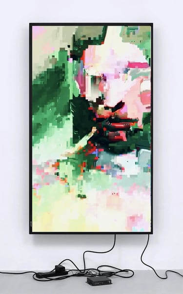 A GLITCHING STORY (2023) is a 38-second HD video loop that explores the poetic tension between digital fragmentation and human presence. Through a cascade of pixelated distortions, color ruptures, and visual noise, the work transforms technological error into expressive language. The glitch becomes not a malfunction, but a metaphor, a rupture in perception, a crack in memory, a pulse of vulnerability. The piece unfolds like a fractured narrative, where identity flickers in and out of legibility. Figures and forms emerge only to dissolve, suggesting the instability of the self in a hyper-mediated world. The loop format reinforces this sense of temporal dislocation: each cycle begins anew, yet carries the residue of what came before, echoing the recursive nature of trauma, healing, and digital memory. Conceptually, A GLITCHING STORY engages with themes of digital decay, post-human embodiment, and the aesthetics of error. It asks: What remains of the self when the medium itself begins to fail? In this way, the work becomes a meditation on presence within absence, coherence within chaos. Created in the wake of your personal journey through illness and transformation, the piece resonates with emotional depth. The glitches are not just visual; they are symbolic of the interruptions life imposes, the rewiring of identity through experience, and the beauty that can emerge from breakdown.