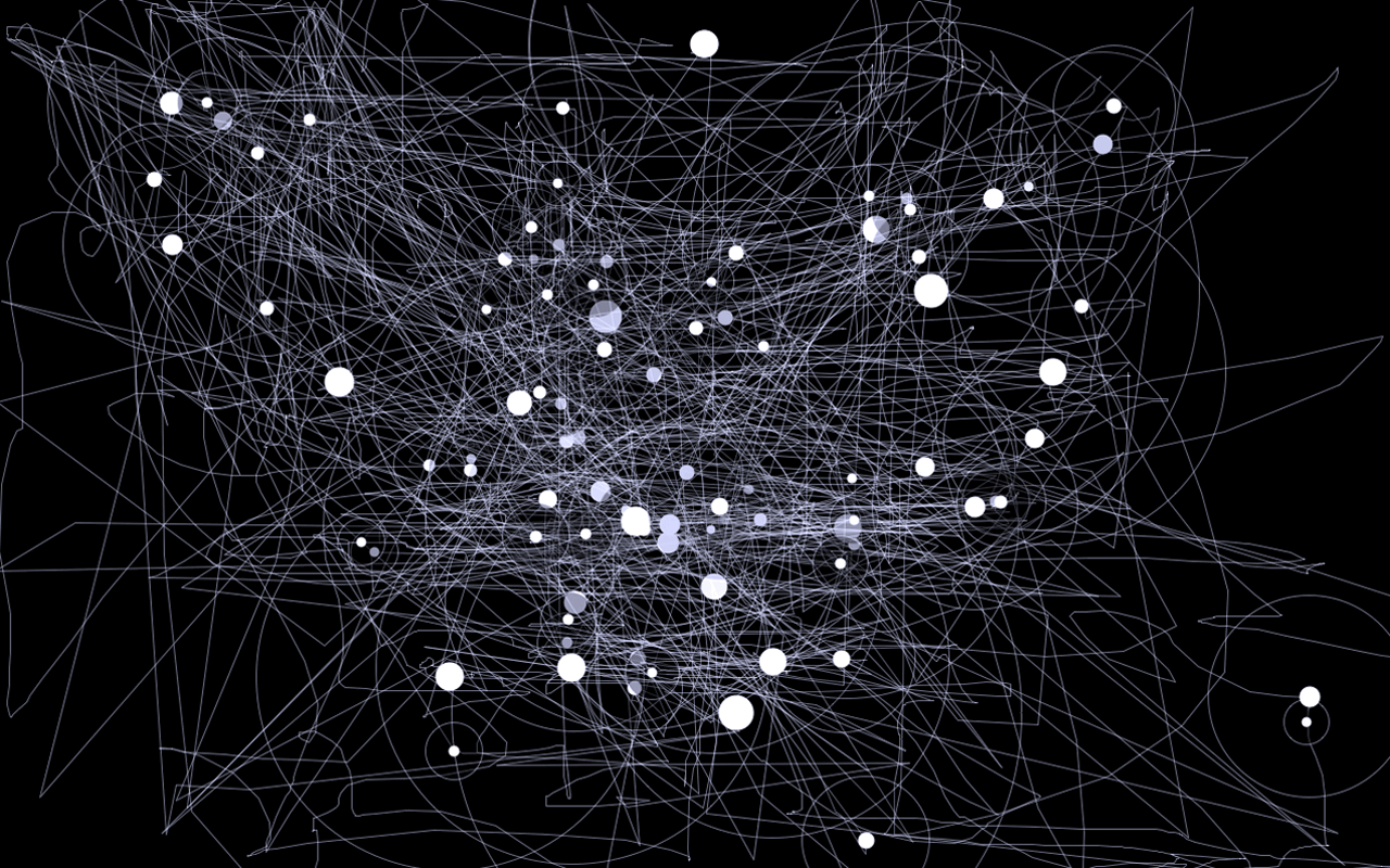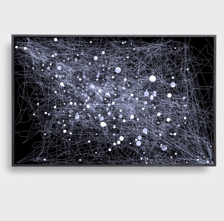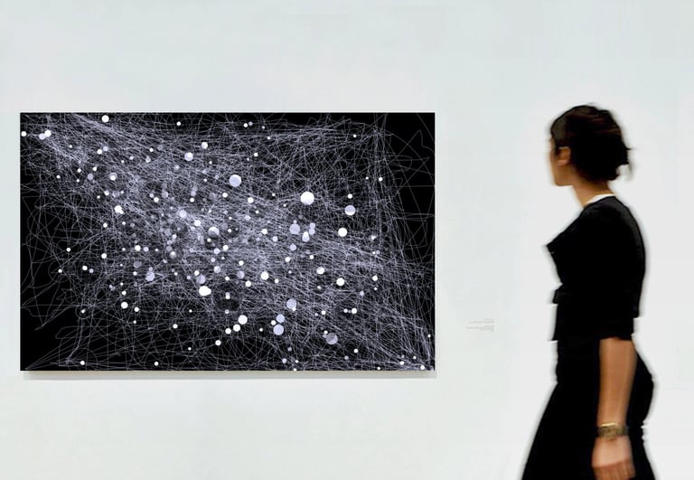 DIGITAL PRINT OF TIME is a series that proposes to rethink the notion of time and its limits. Utilizing the diversion of open-source software that tracks mouse movements and converts them into a single image, this project redefines the representation of time. This image does not represent the reel duration of time but its conversion into movements. Such a digital amplification of time relativity does not create a new dimension of measurement, but rather a different representation of duration and its limits. DIGITAL PRINT OF TIME interrogates the fabric of temporality through an unexpected lens: the erratic choreography of a computer mouse. By repurposing open-source software that traces and compresses these movements into a singular image, the series dismantles classical conceptions of time as linear or quantifiable, and reimagines it as a field of embodied gesture, dispersed attention, and psychic intensities. Philosophically, the project aligns with Henri Bergson’s notion of duration la durée — time not as a measurable sequence, but as a qualitative flow of lived experience. Here, duration is not recorded but translated into kinetic impressions.