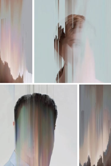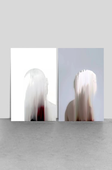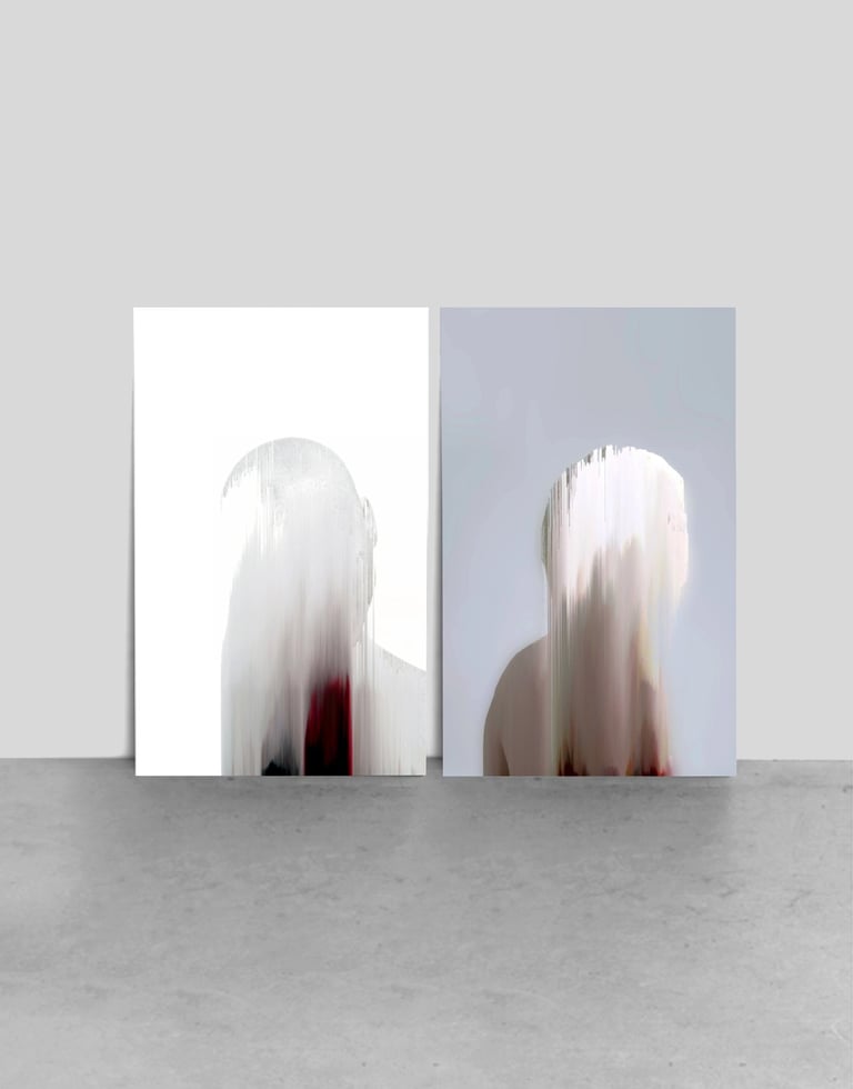 F@CELESS is the series of digitally created vanishing portraits. It investigates the idea of hunted identities existing only in digital environments: e-spaces. Those portraits mirror the unseen, covered, camouflaged, disguised, masked, shrouded, veiled, and unveiled concealment of nowadays liquid identities. F@celess are living anonymously in e-spaces, hiding from hyper-visibility and disappearing immediately when someone attempts to approach them too closely. Using augmented reality layer AR, it is possible to discover the identities of vanishing f@ces well hidden in the portraits, but the question will still remain: who are they?