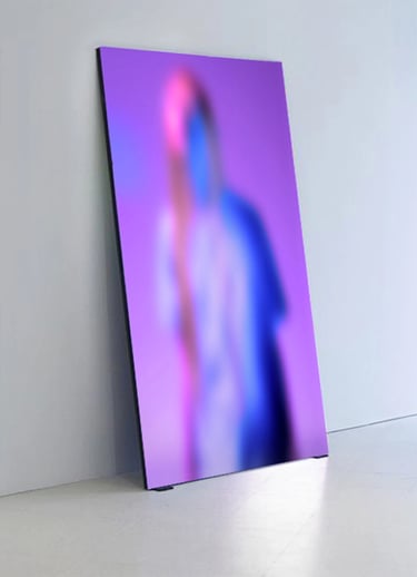 HIGH DEFINITION BLUR is a series that explores the contradiction of dreams as they relate to visual representation. It aims to randomly recreate the fragmented, often incomplete, and sometimes surreal nature of dreams. Though these visual explorations aren't pre-designed, they evolve into narratives that are accessible to all. Contrary to flawless, high-definition digital imagery, this series offers a softened representation, free from fixed interpretation. It isn’t about illustrating recurring themes identified through psychological analyses or studies—but rather about expressing a personal feeling, reflecting individuality and subjectivity. The meaning of the dream here lies in our perception of reality beyond the disembodied wanderings of the dreamer. Whether dreamlike or realistic, the dream evokes emotion, fear, impulse, and desire. Without attempting to seek exact meanings, the idea is to immerse oneself in a sensory space that stirs distinct feelings in each viewer. This is not the recounting of a single night—but a visual meditation on the question: Are all dreams illusions? Awaiting future explorations in virtual reality, this preview of my work showcases a dystopian imagination seeking visual forms that reflect the unreal. The deliberate variation in formats and sizes is intended to make each piece unique in its post-digital (re)production. The juxtaposition of blur and vivid colors illustrates a delayed and fragmented perception of memories— hidden within a random composition.