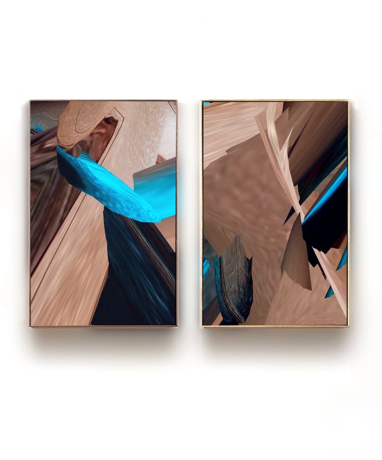 L'ESTHÉTIQUE DU HASARD is a cross-digital exploration of randomness as both aesthetic principle and philosophical provocation. Created through hybrid digital techniques, the work resists fixed form. It embraces the generative potential of chance, where algorithmic processes, visual fragmentation, and unpredictable outcomes converge to produce a new kind of beauty — one that is unstable, emergent, and deeply reflective of our contemporary condition. This project interrogates the boundaries between control and chaos, intention and accident. In a world increasingly mediated by digital systems, randomness is not an error, but an essence. The work challenges the viewer to reconsider what it means to perceive, to interpret, and to represent in an age where the digital image is no longer a mirror of reality, but a construct shaped by invisible codes and contingent flows. Philosophically, L'ESTHÉTIQUE DU HASARD draws from post-structuralist thought and phenomenology, suggesting that perception itself is a fluid act, always partial, always mediated. The digital becomes a site of rupture and possibility, where the aesthetic is not predefined but discovered through interaction, layering, and distortion. The interplay of earthy textures and electric blues evokes a tension between organic memory and synthetic presence, between the tactile and the intangible.