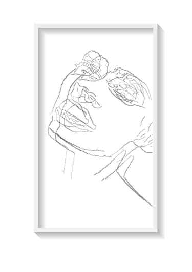 OH—AH is a series born from the visual residue of advertisements that objectify women, images designed to seduce, sell, and simplify. By appropriating these commercial visuals and subjecting them to algorithmic subtraction, the series transforms their glossy surfaces into sparse, digital drawings that expose the artificiality of their expression. What remains is a ghost of the original, a face stripped of context, reduced to lines and voids, yet paradoxically more revealing. The process itself is a conceptual act — a digital erasure that critiques the mechanisms of visual culture. Through algorithmic intervention, the seductive image is deconstructed, its emotional cues distorted, its humanity abstracted. These faces — once curated for desire — become uncanny masks, suspended between recognition and alienation. Their open mouths, tilted heads, and vacant gazes evoke not sensuality, but simulation. Philosophically, OH—AH engages with themes of post-feminist critique, digital identity, and media archaeology. It questions how algorithmic systems perpetuate aesthetic norms and gendered stereotypes, and how the digital gaze reshapes our understanding of beauty, emotion, and presence.